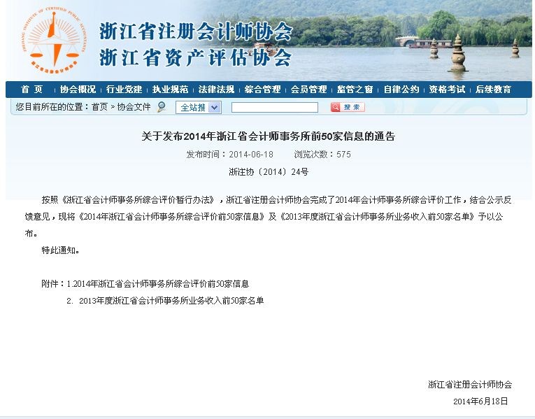 2014省注册会计师协会综合评价工作落幕,浙江广泽联合会计师事务所(普通合伙)名列全省第31强。系衢州地区首届、首家进全省50强。